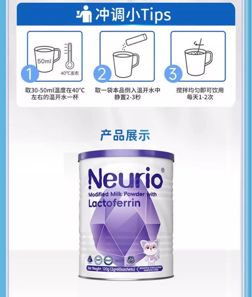 澳洲Neurio纽瑞优乳铁蛋白调制乳粉免疫版60袋 120g
