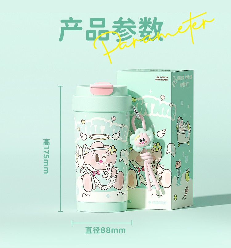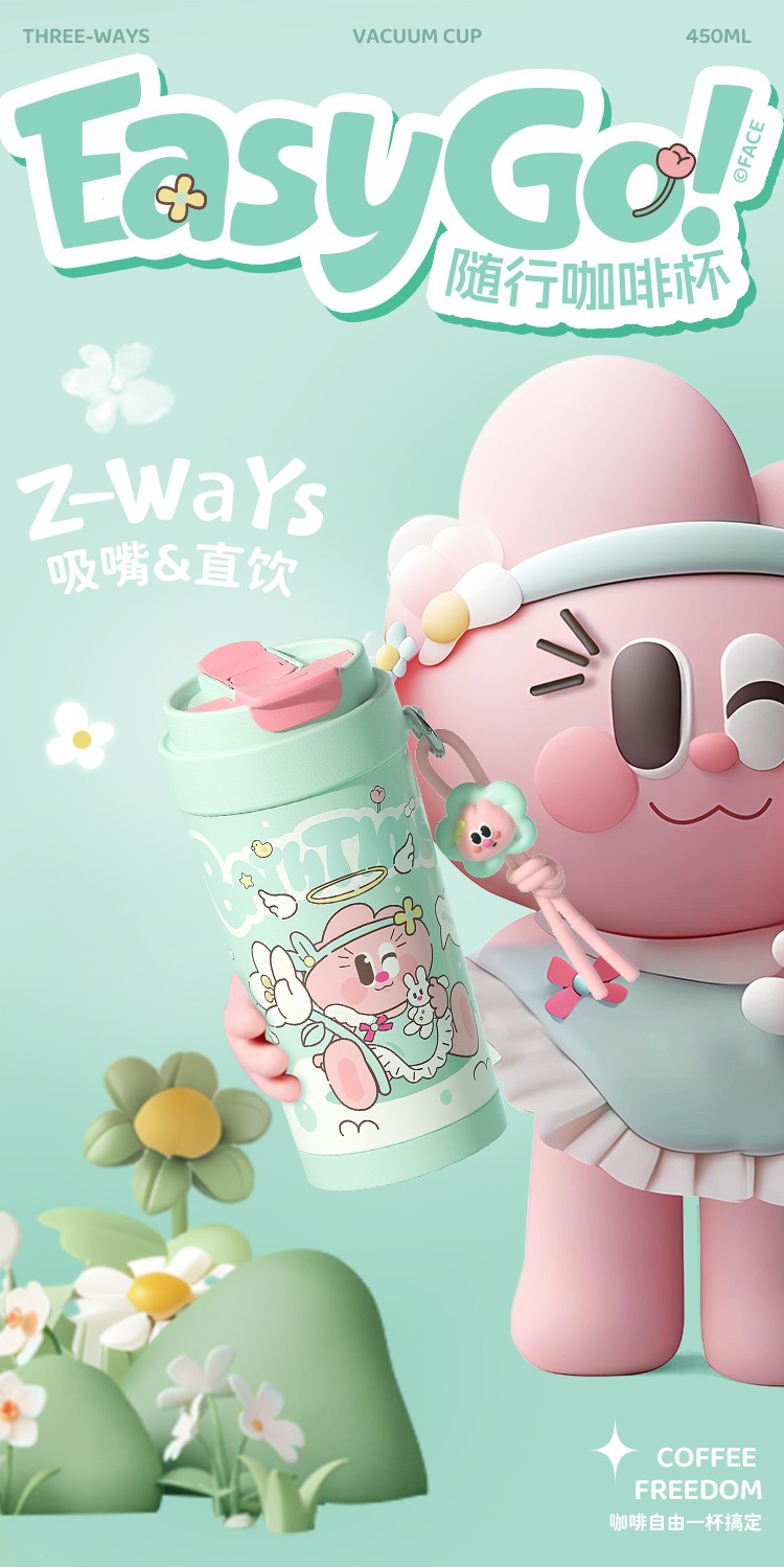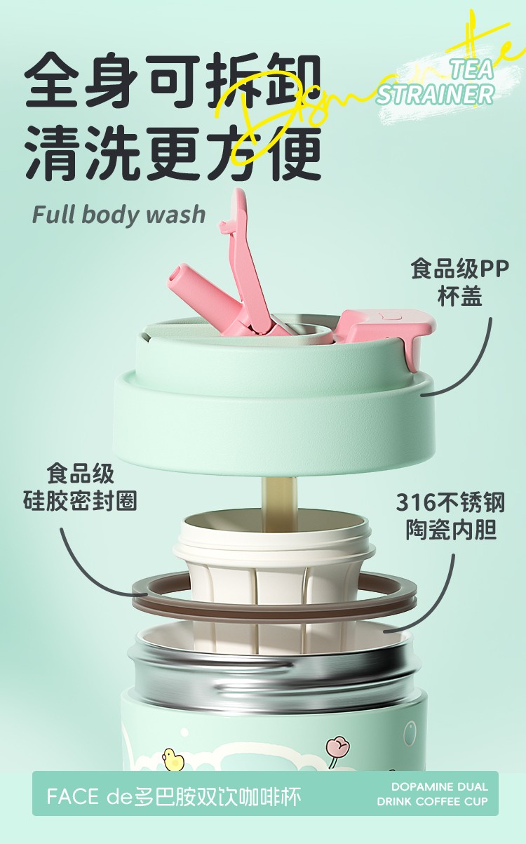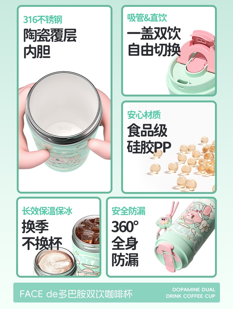 FACE 绵绵双饮杯(陶瓷内胆)【蓝色】(450ml)