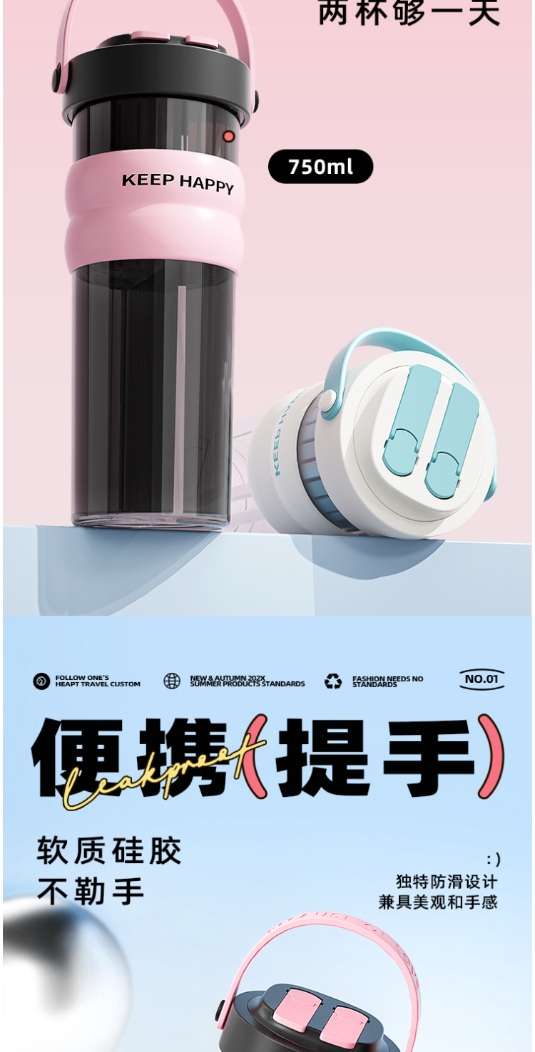 FACE 夏季双仓吸管杯【灵动粉绿】(750ml)