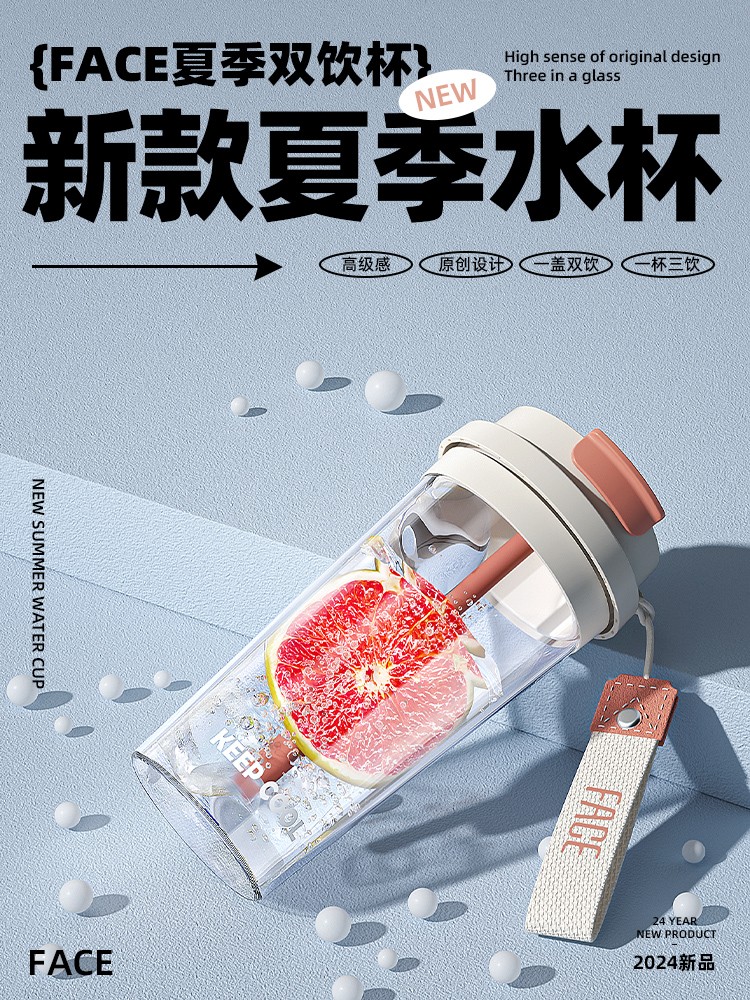 FACE 双饮手提吸管杯【克莱因蓝】(580ml)