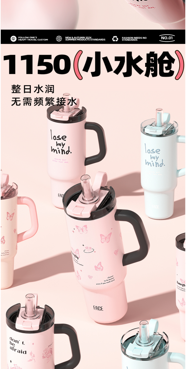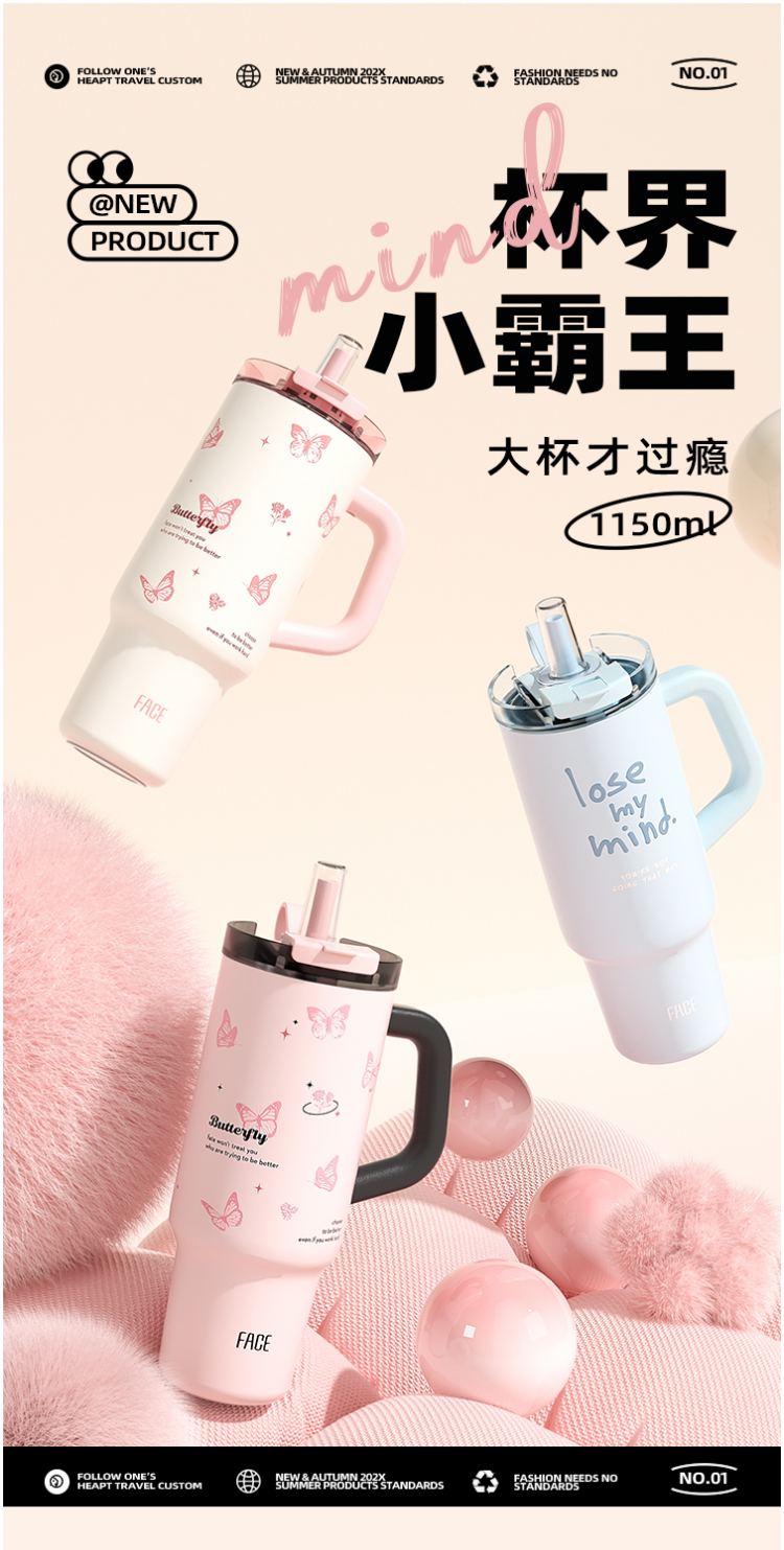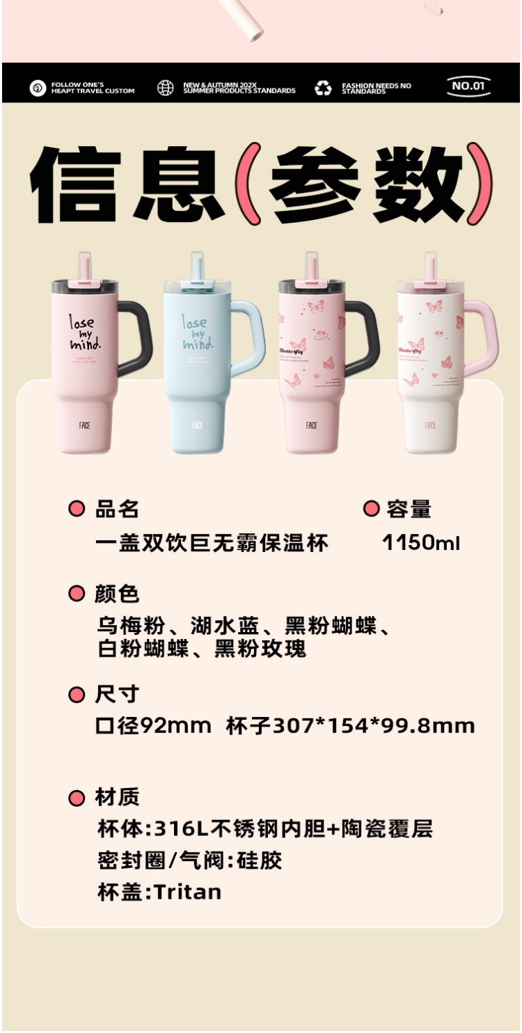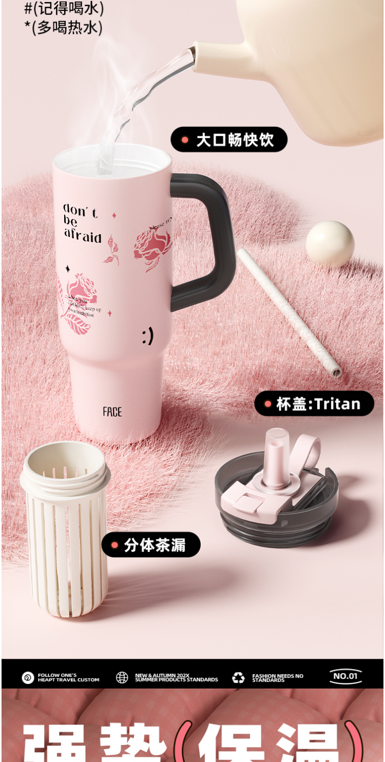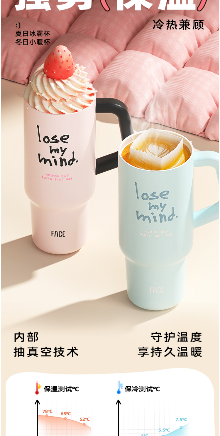 FACE 一盖双饮巨无霸保温杯(陶瓷内胆)【乌梅粉】(1150ml)