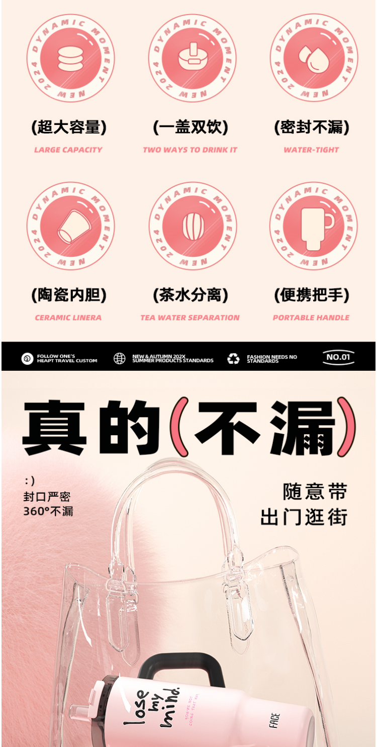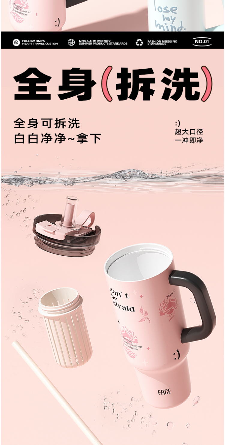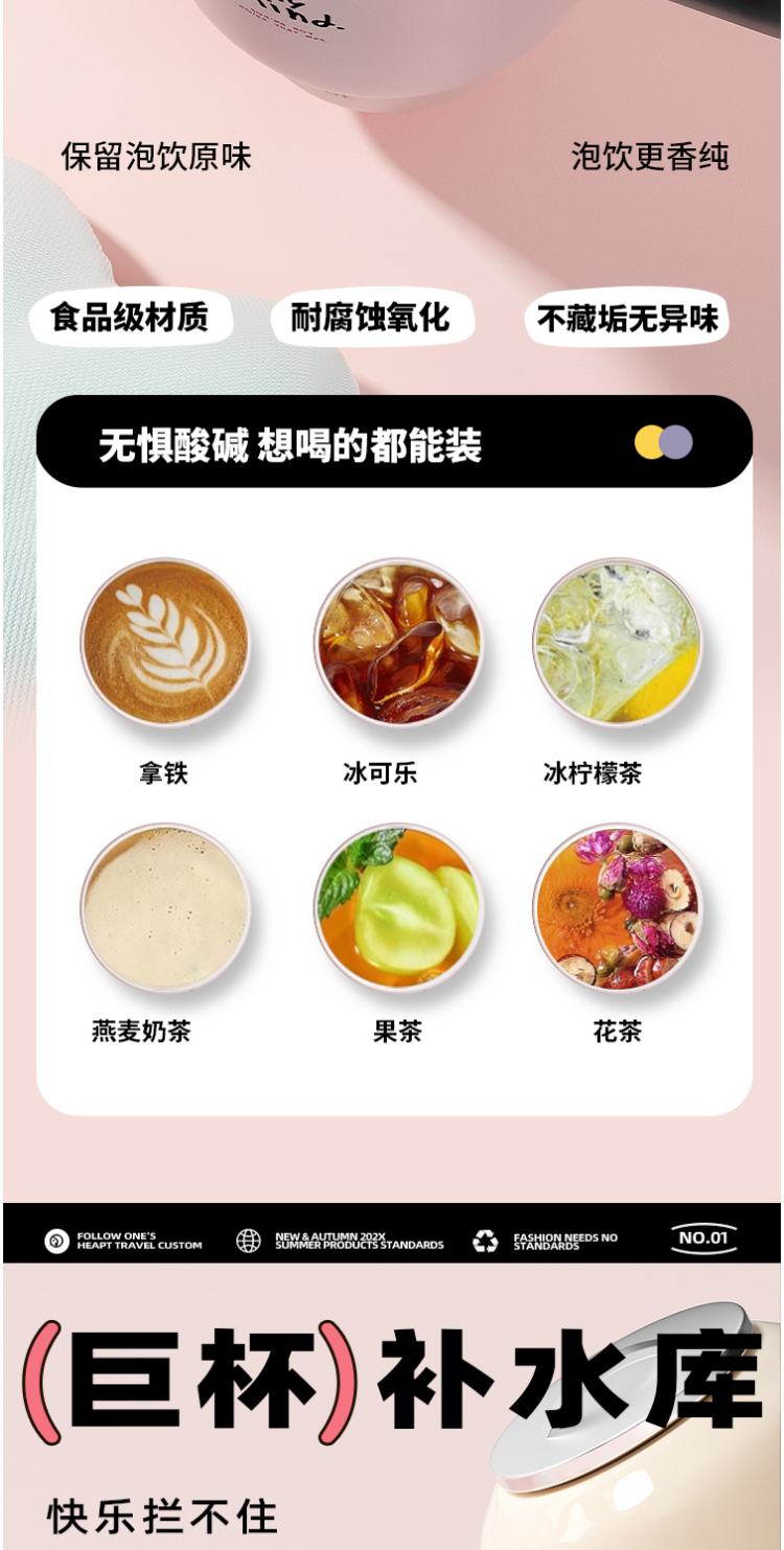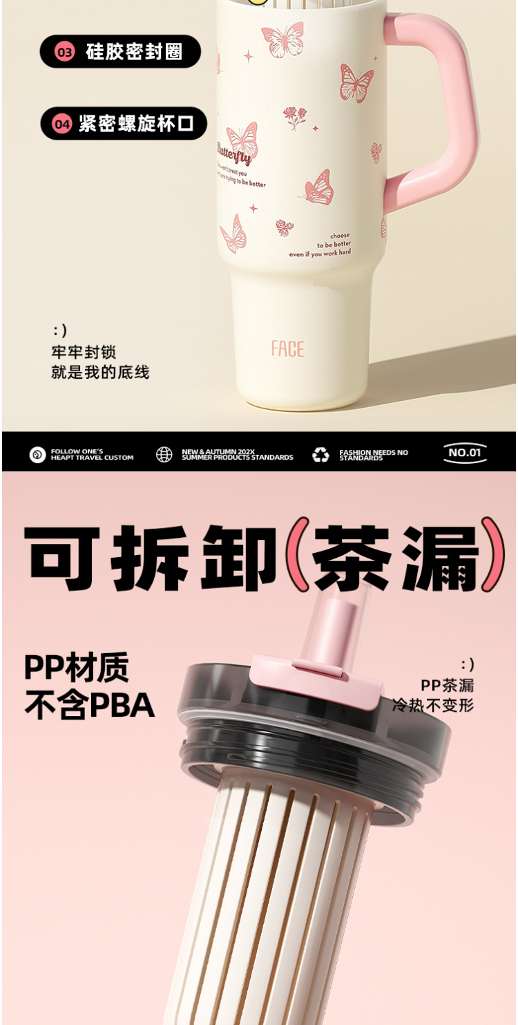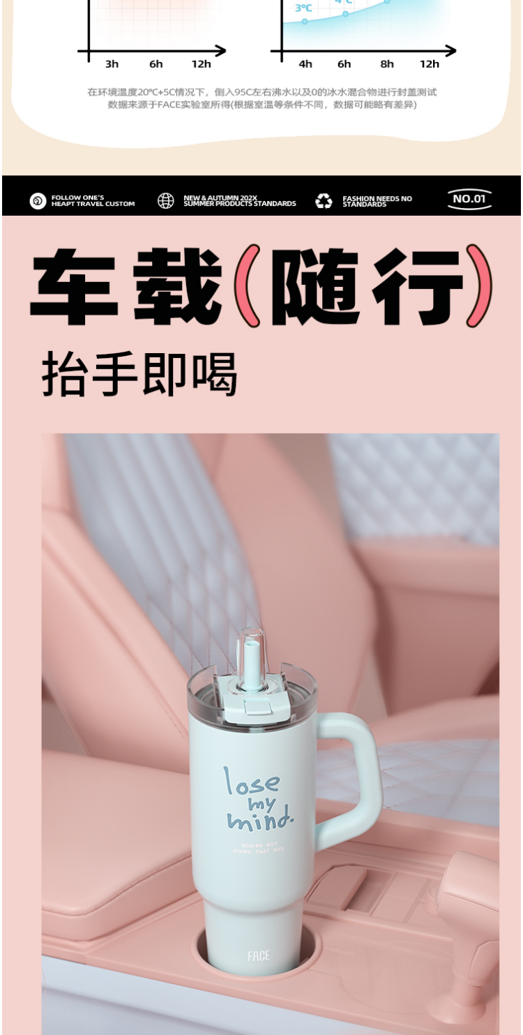 FACE 一盖双饮巨无霸保温杯(陶瓷内胆)【乌梅粉】(1150ml)