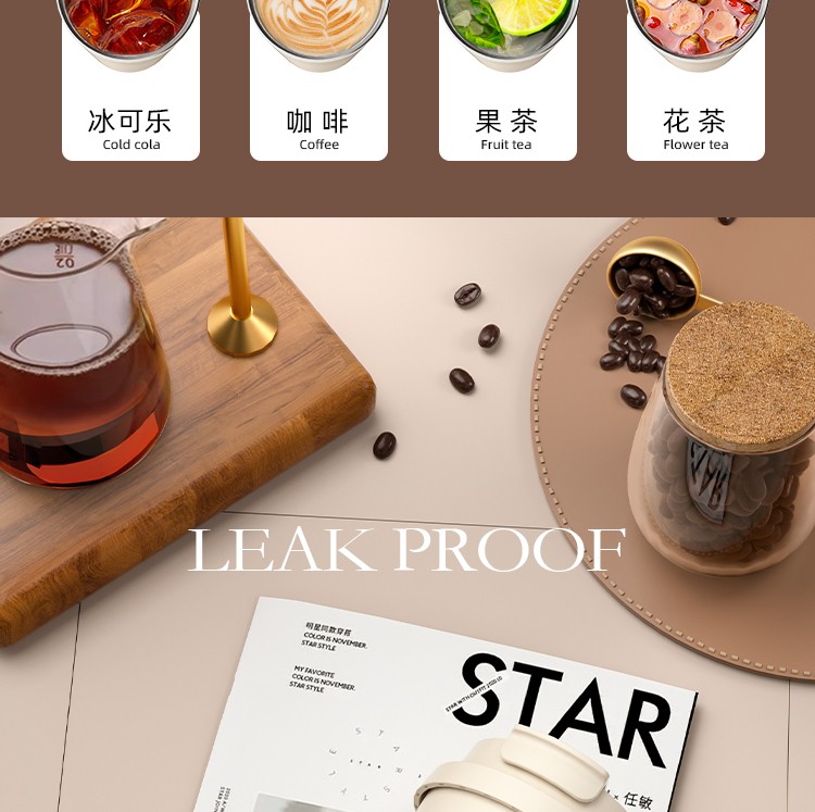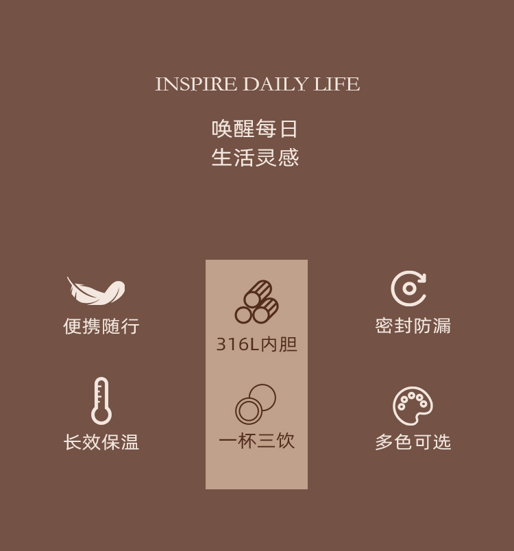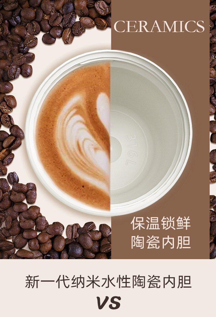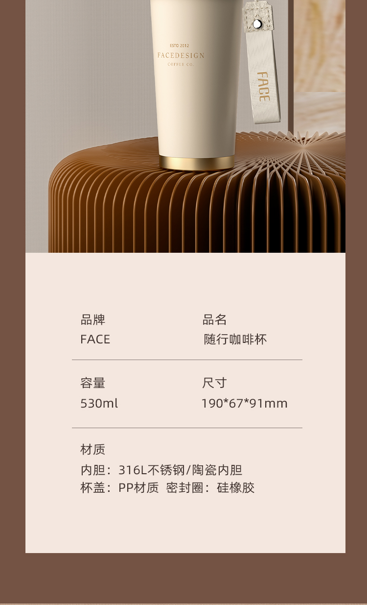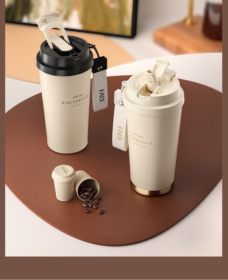 FACE 双饮手提咖啡杯(316不锈钢陶瓷涂层)无图案【金色】(530ml)