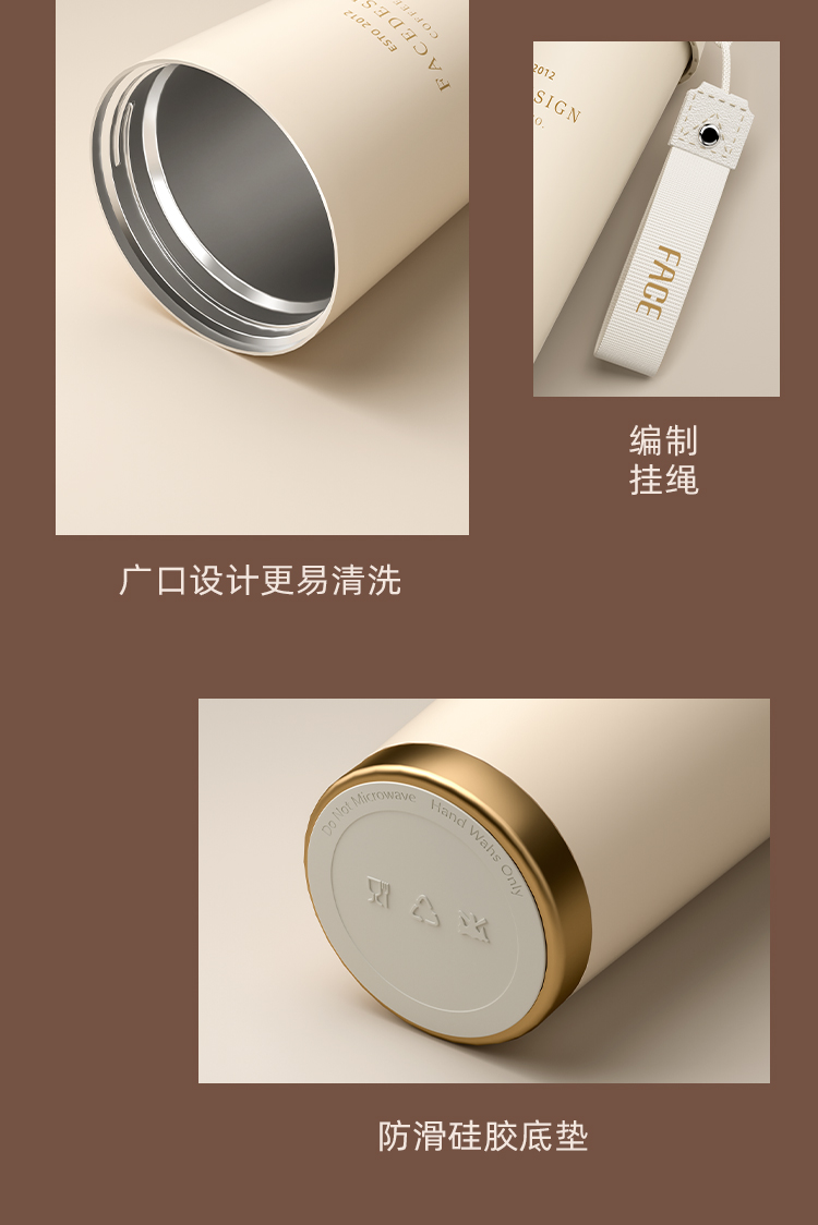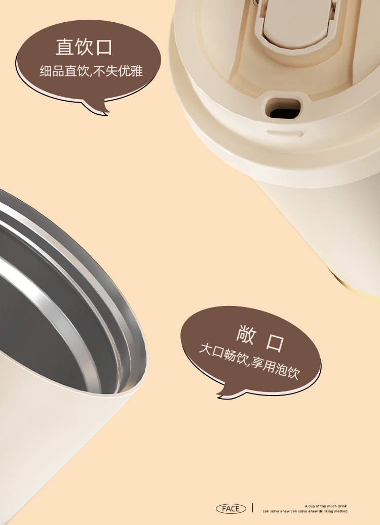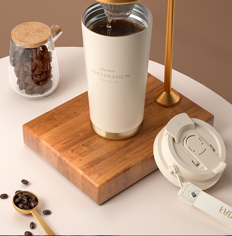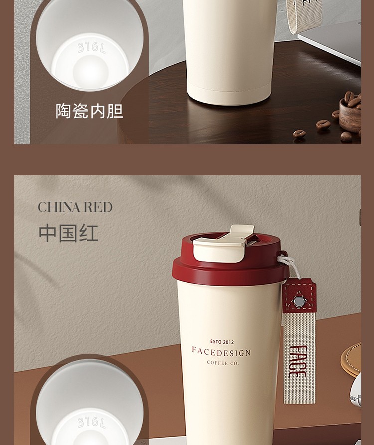 FACE 双饮手提咖啡杯(316不锈钢陶瓷涂层)无图案【红色】(530ml)