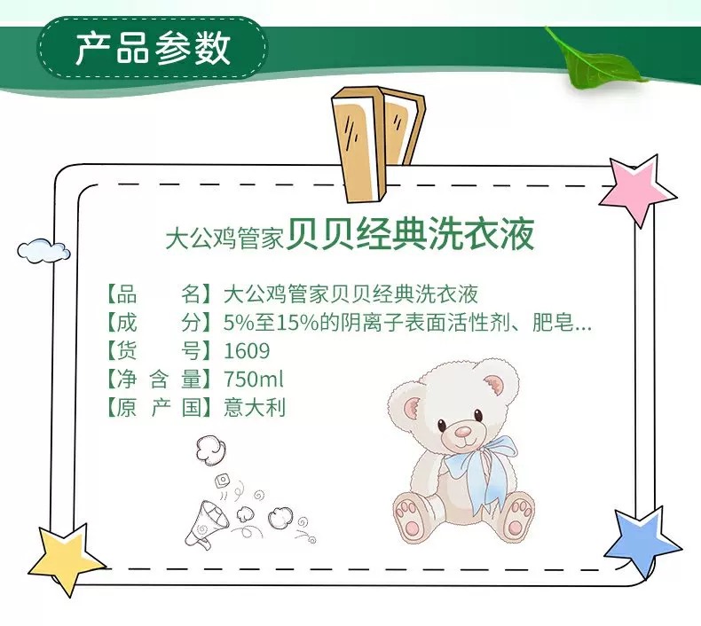 大公鸡管家 儿童贝贝经典洗衣液750ml(植物配方)