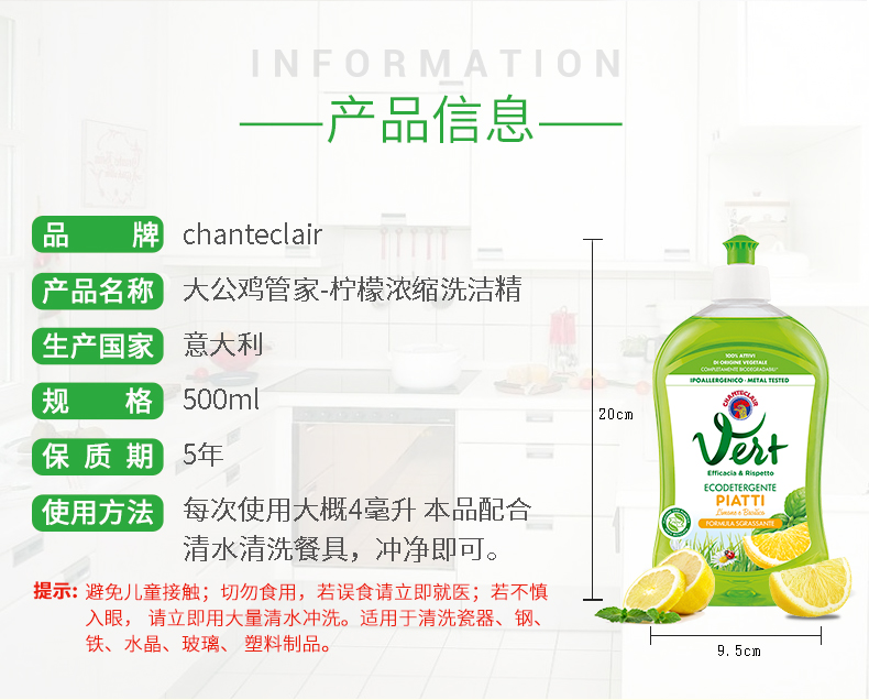 大公鸡管家 浓缩洗洁精(柠檬味)500ml*2瓶