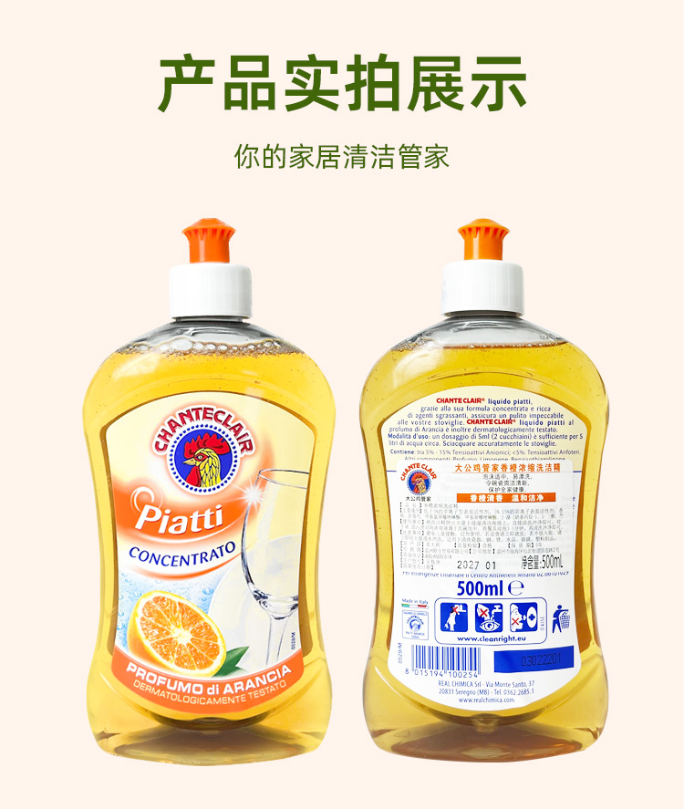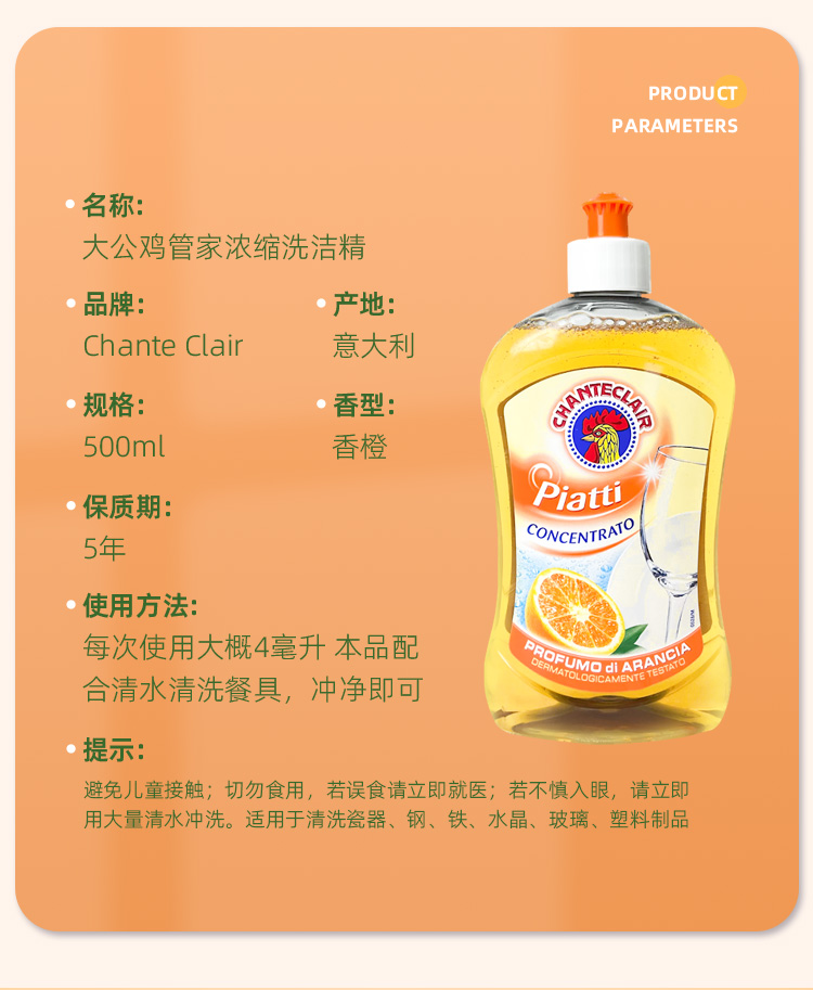 大公鸡管家 浓缩洗洁精(香橙味)500ml