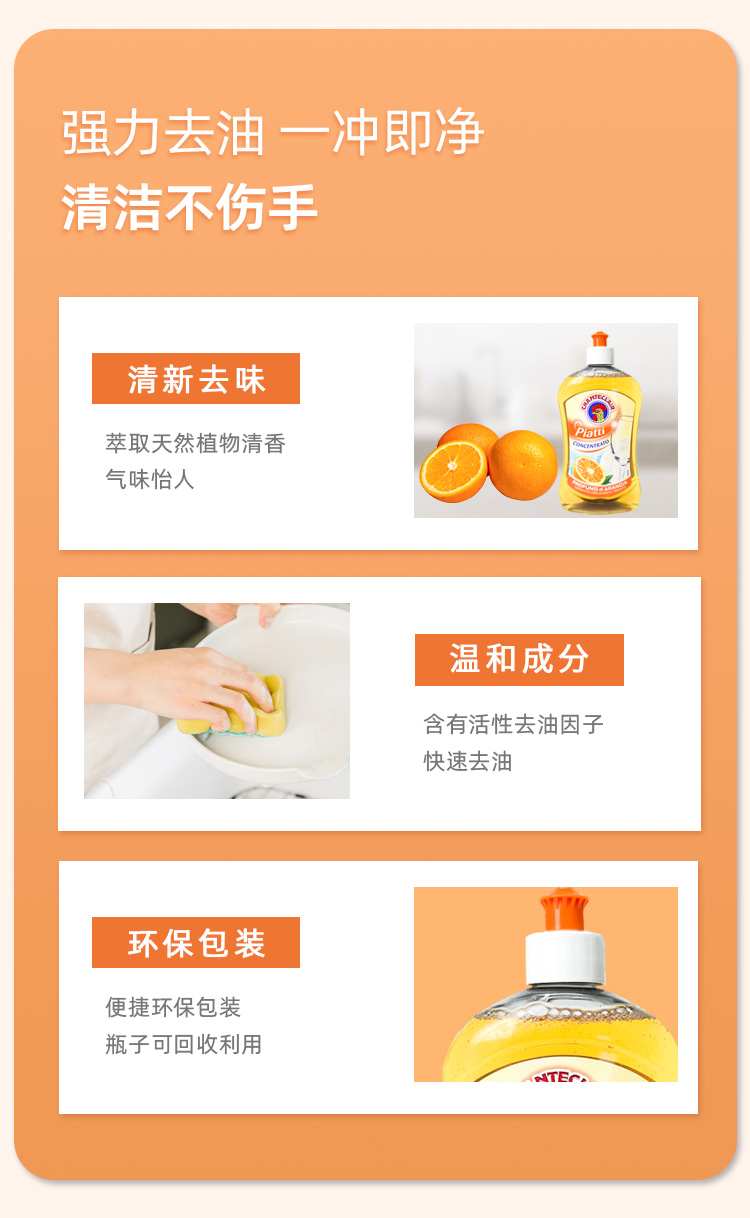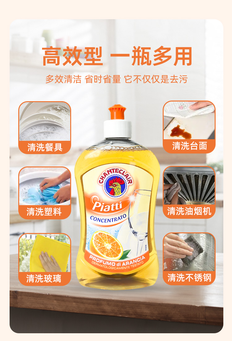 大公鸡管家 浓缩洗洁精(香橙味)500ml*2瓶