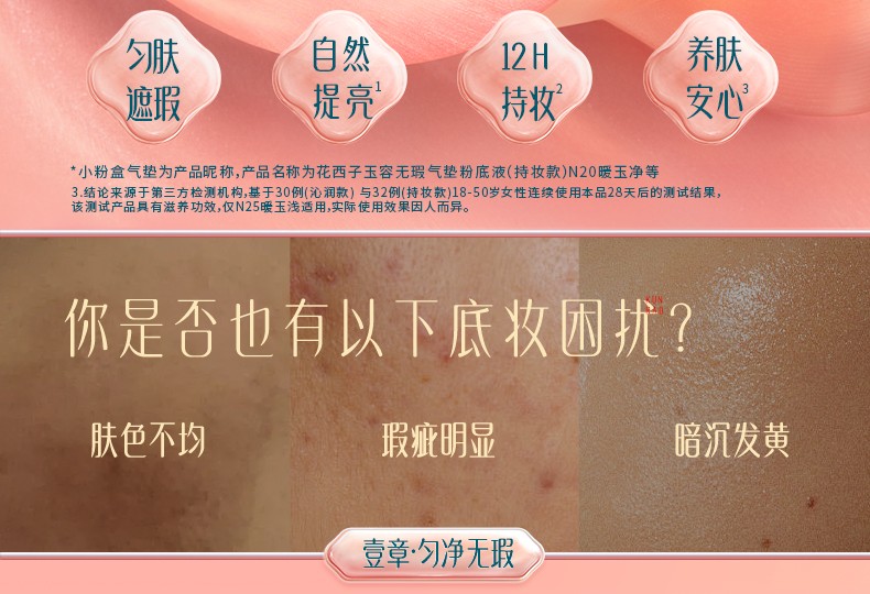 花西子 玉容无瑕气垫粉底液-持妆款-N20暖玉净-11g*2(一正一替)