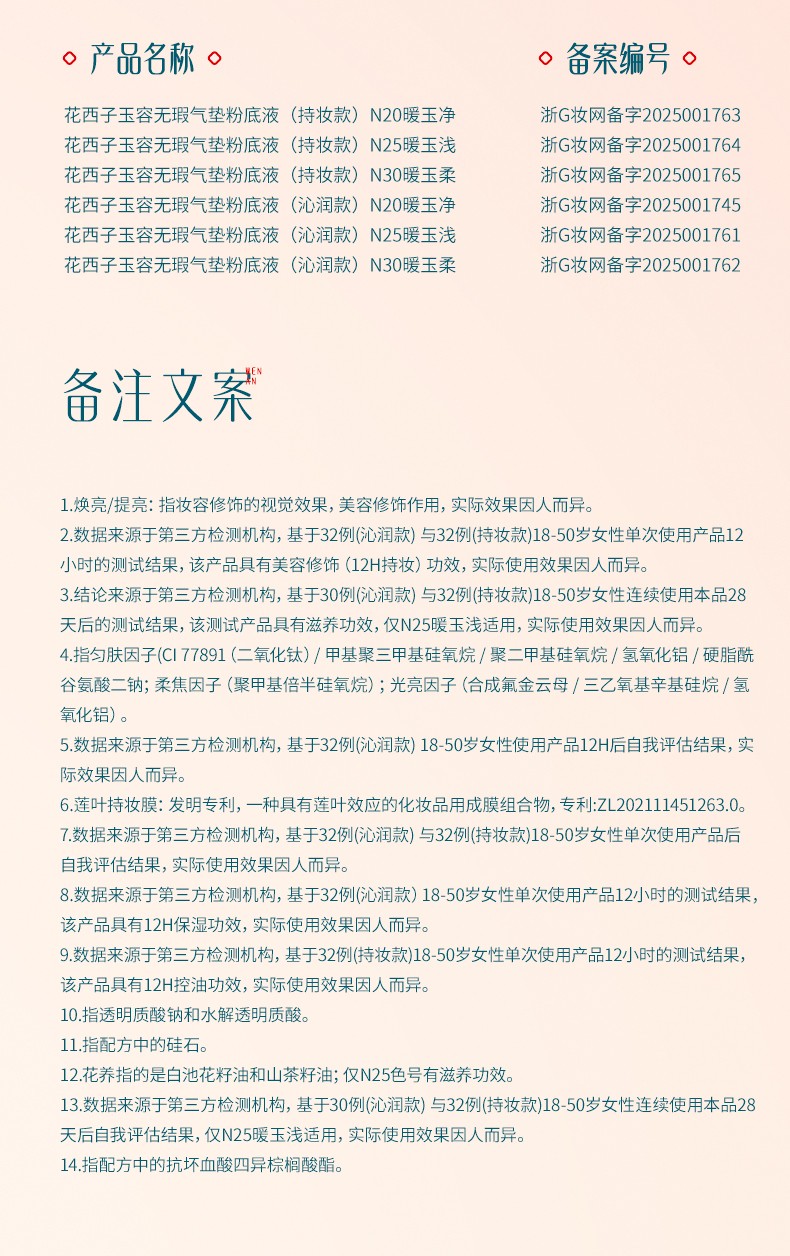 花西子 玉容无瑕气垫粉底液-持妆款-N25暖玉浅-11g*2(一正一替)