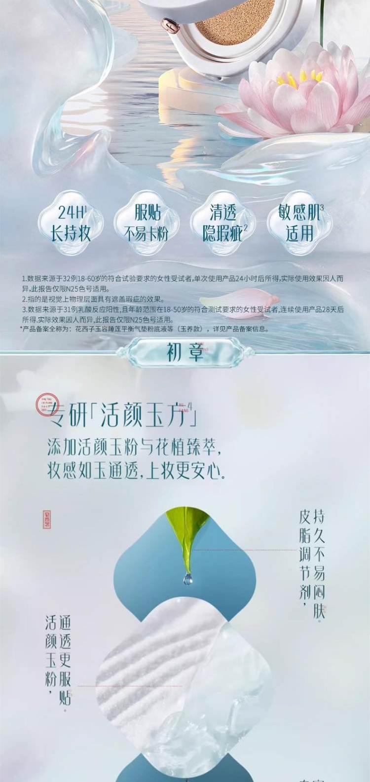 花西子 玉容睡莲平衡气垫粉底液-持妆遮瑕款2.0-N25水潋风荷(玉养款)