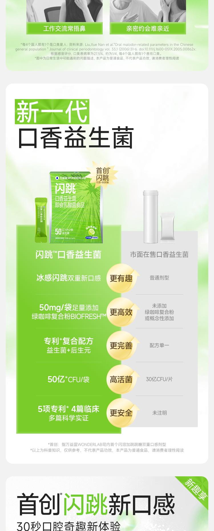 万益蓝WonderLab 升级闪跳口香益生菌 玫瑰清荔【21条】*3盒