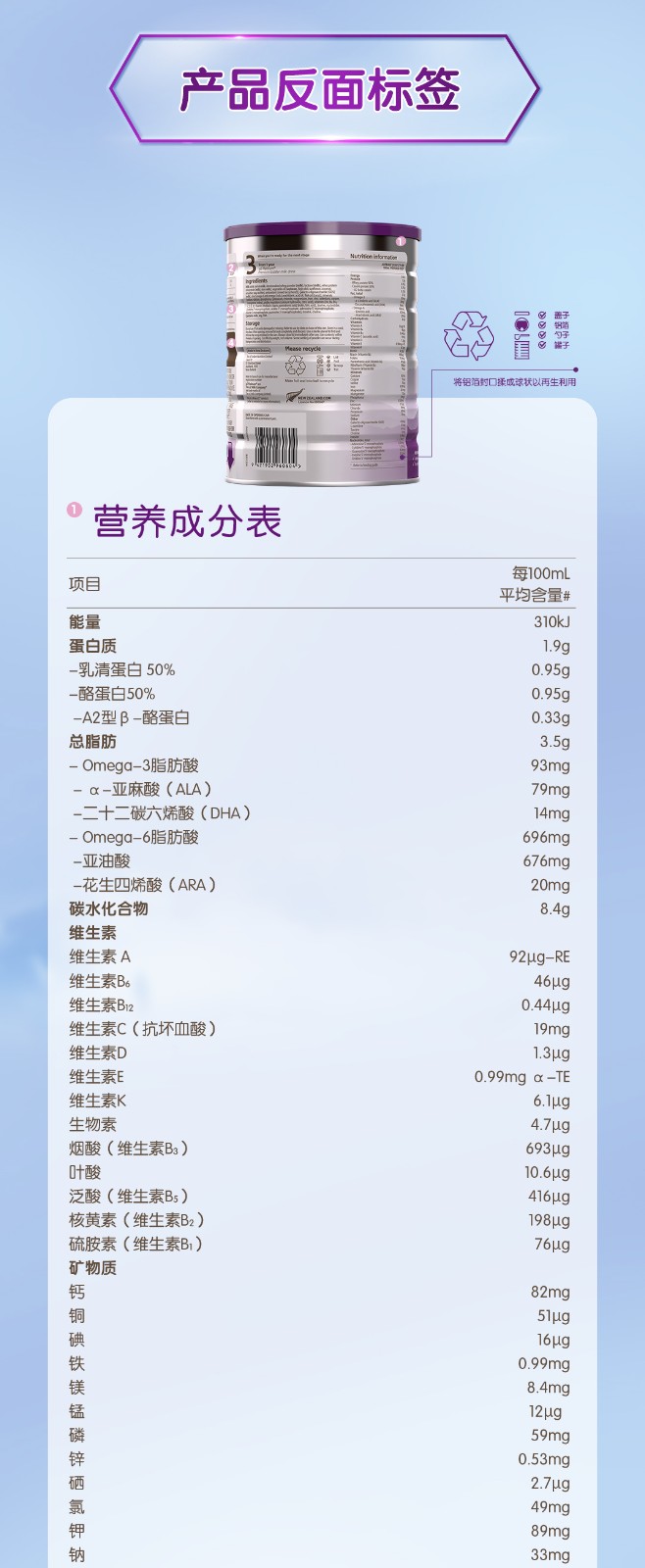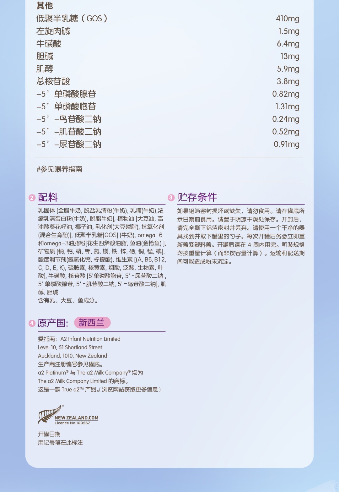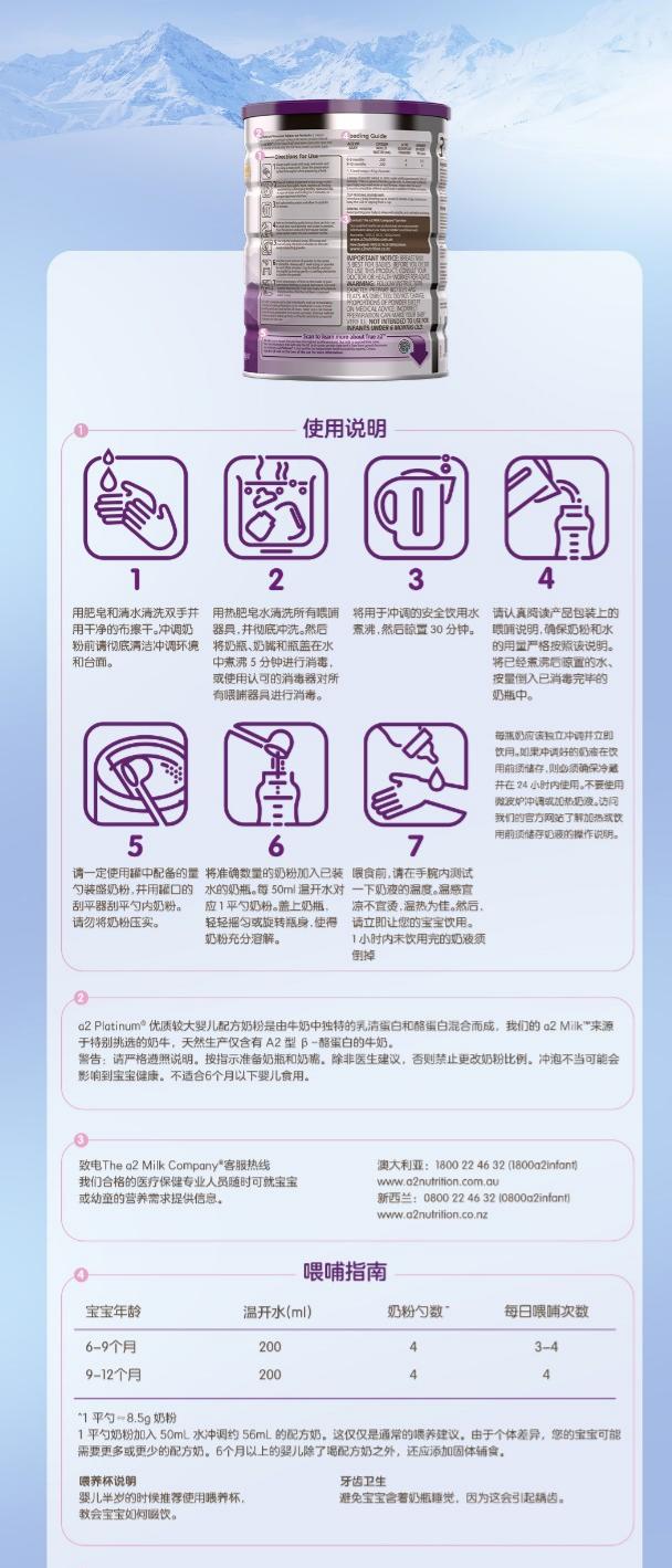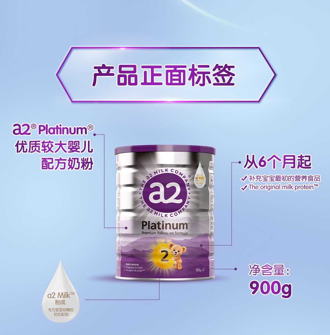 新西兰a2白金婴儿奶粉2段900g(新包装)