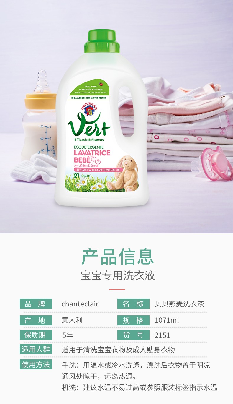 大公鸡管家 儿童贝贝燕麦洗衣液1071ml