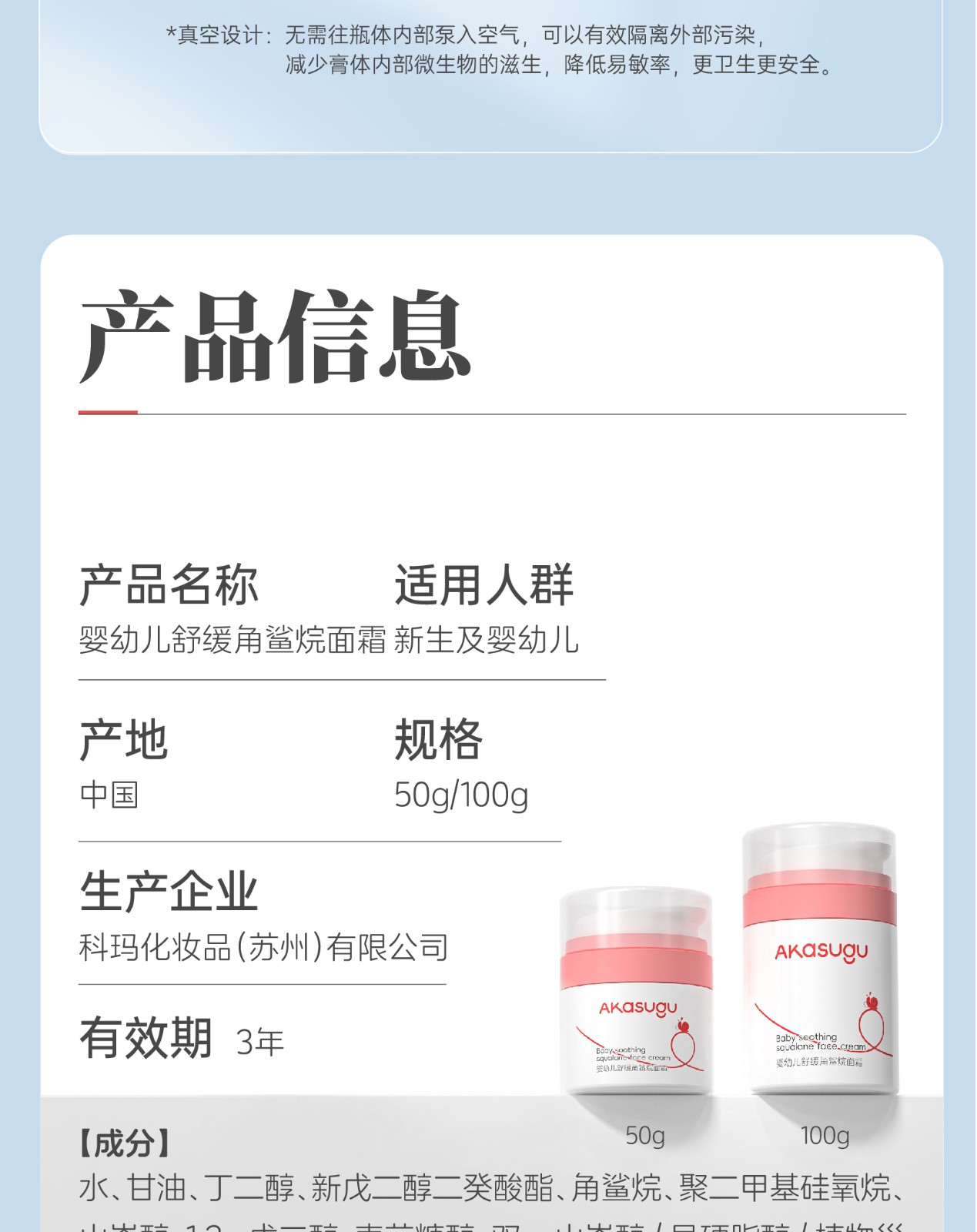爱舒屋 婴幼儿舒缓角鲨烷面霜50g