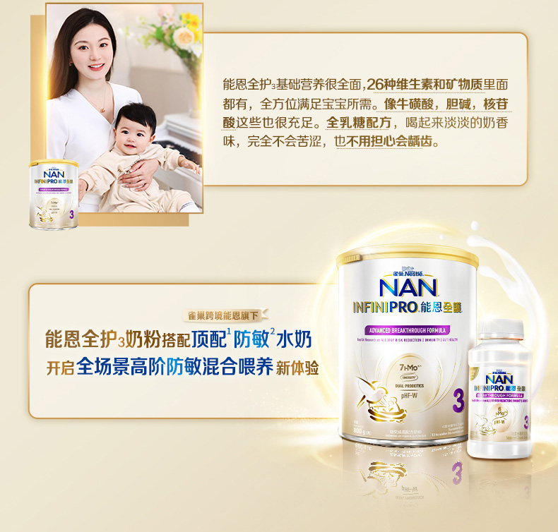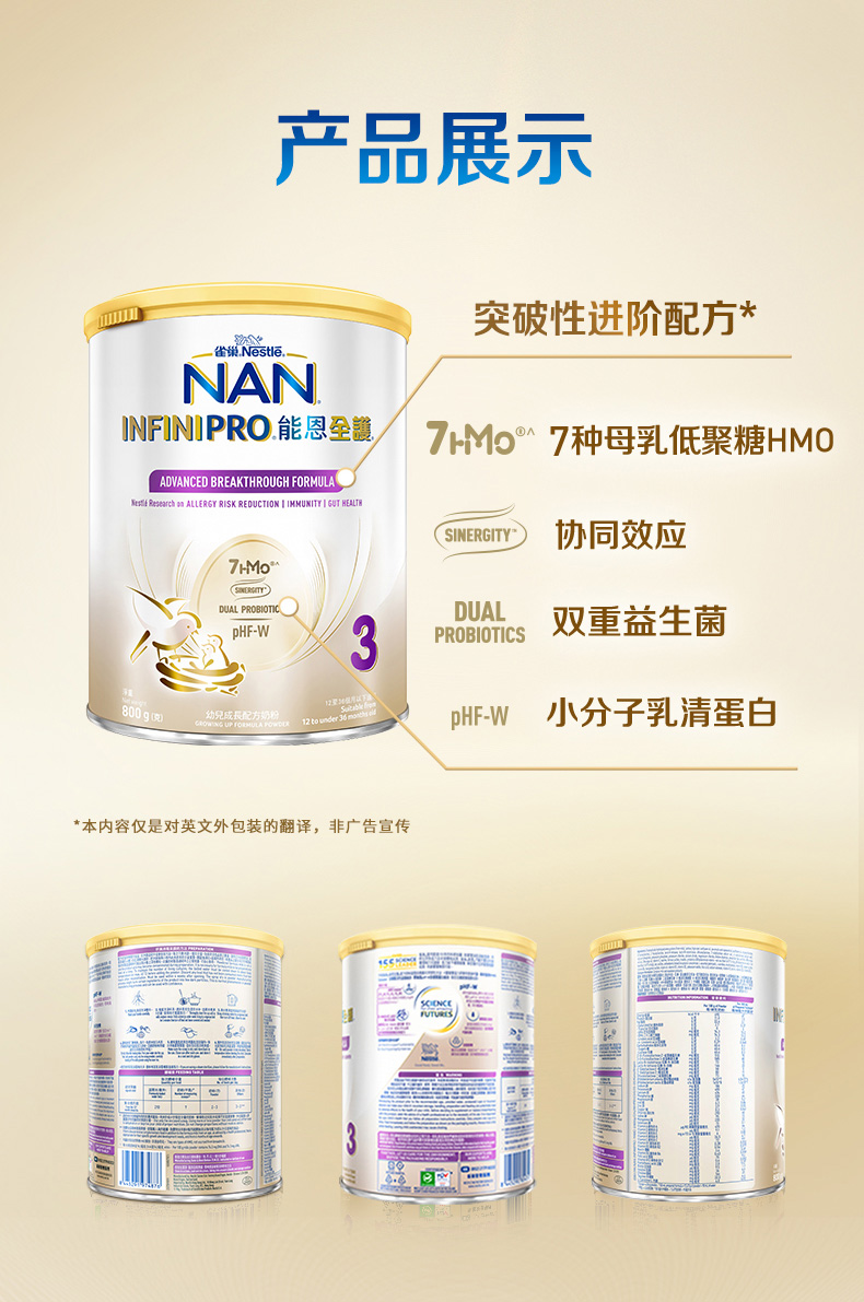 Nestle雀巢能恩全护7HMO婴儿配方奶粉3段 800g