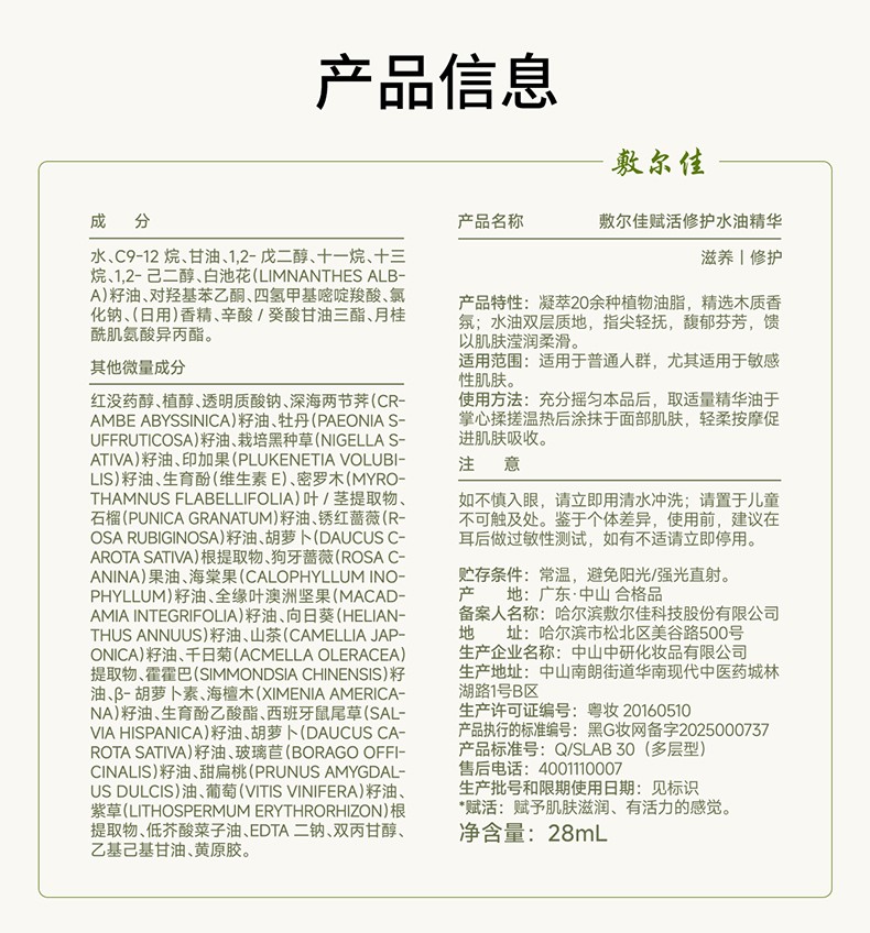 敷尔佳 赋活修护水油精华凤凰水油(28ml/1瓶)