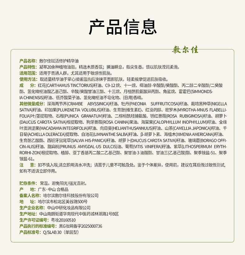 敷尔佳 赋活修护精华油凤凰油(28ml/1瓶)