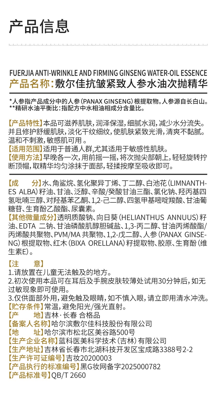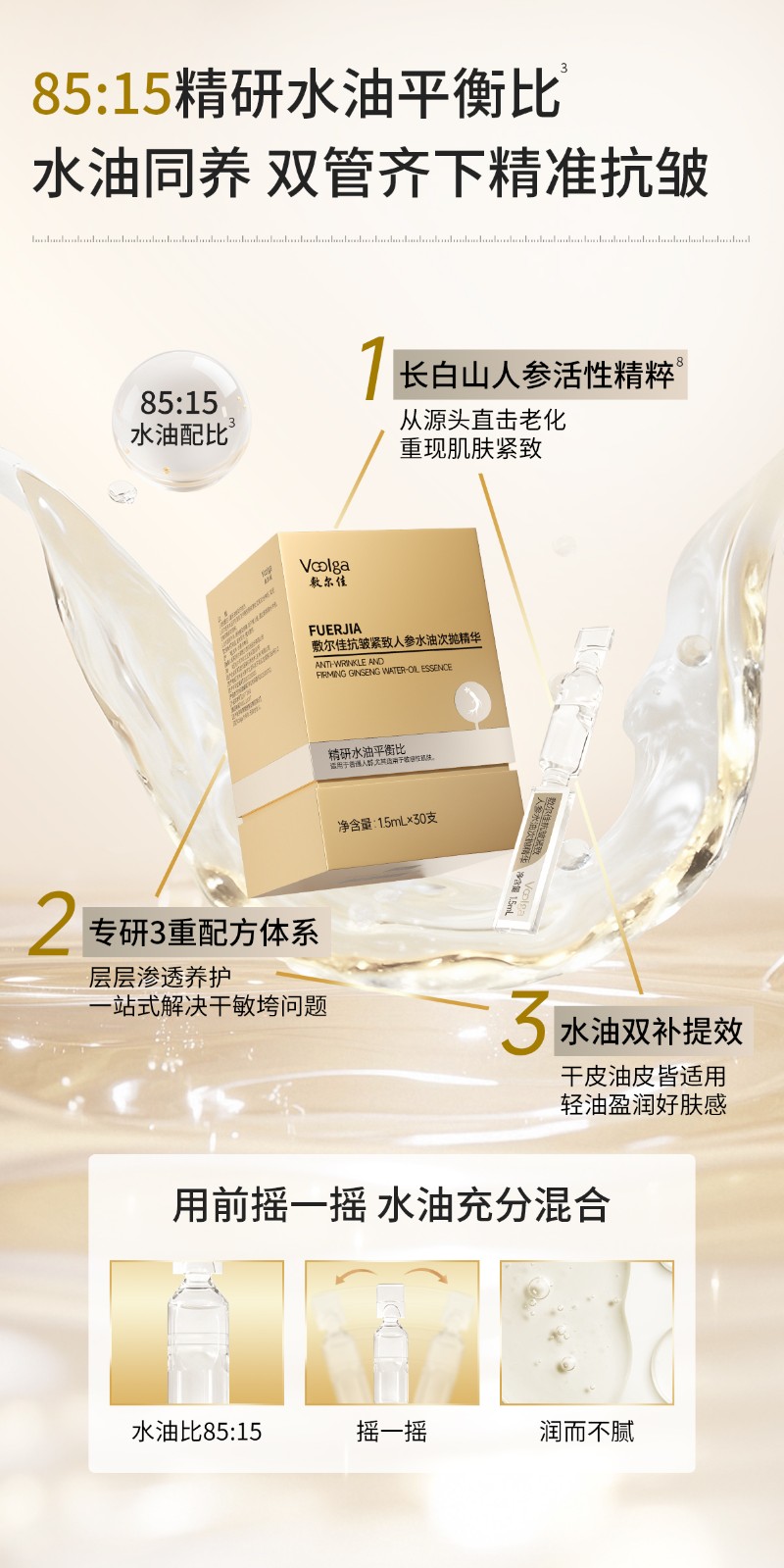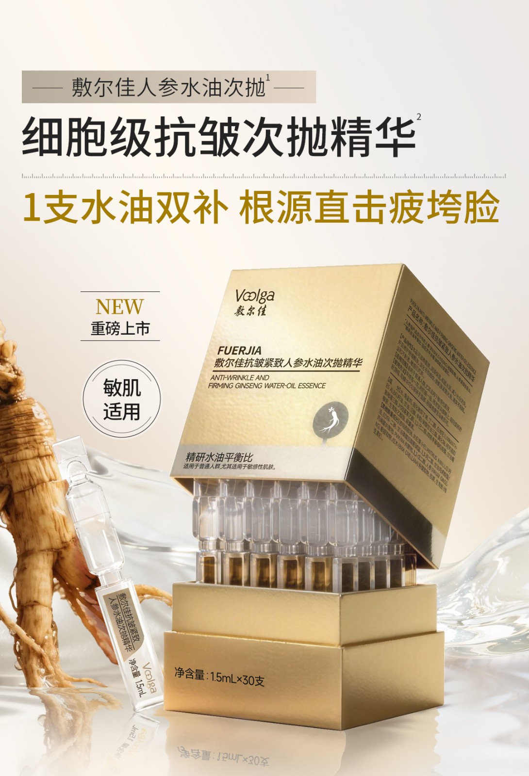 敷尔佳 抗皱紧致人参水油次抛精华人参水油次抛(1.5ml*30支)