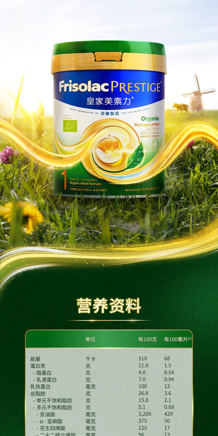 港版Frisolac美素力皇家有机婴幼儿配方奶粉1段800g(新包装)