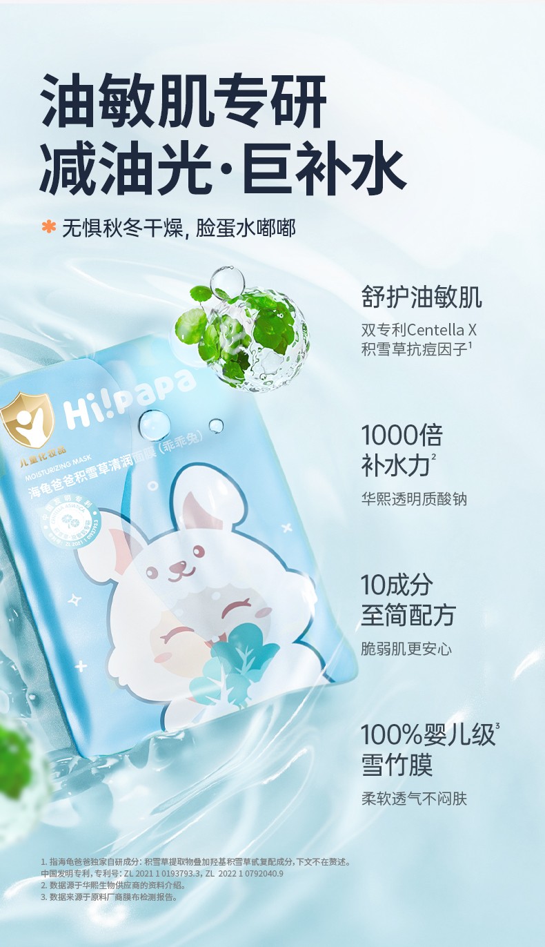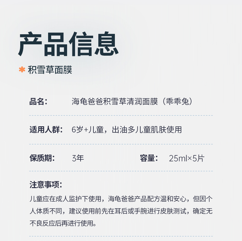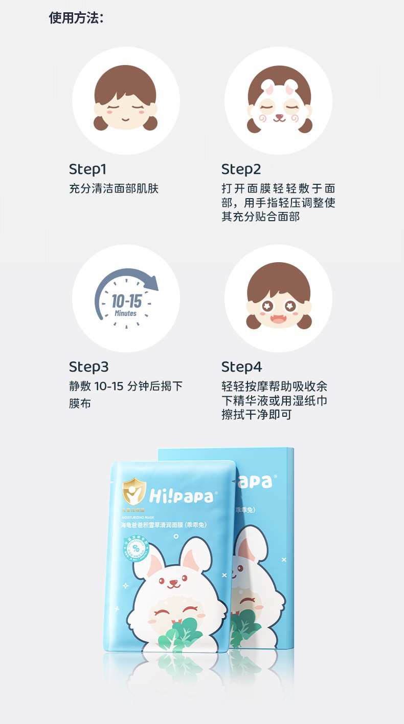 海龟爸爸Hi!papa 积雪草清润面膜(乖乖兔)25ml*5片*1盒